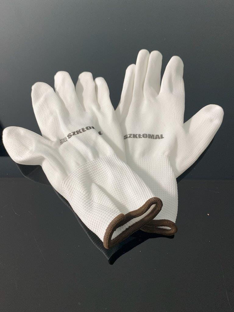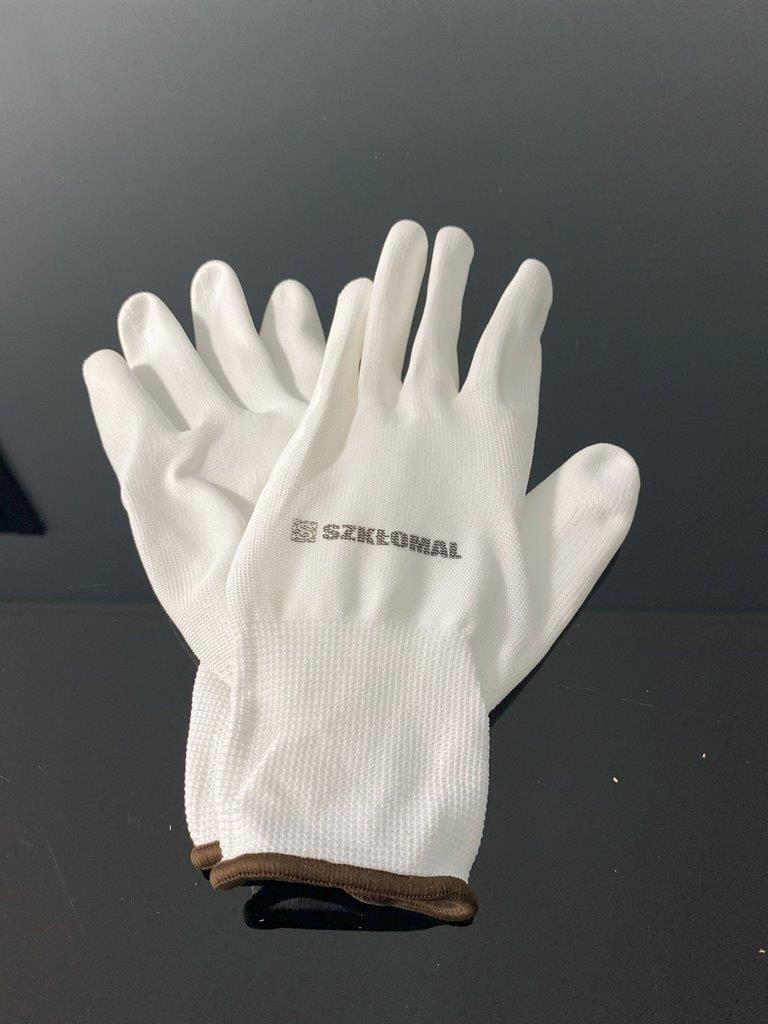 Rękawiczki poliestrowe z białą powłoką PU